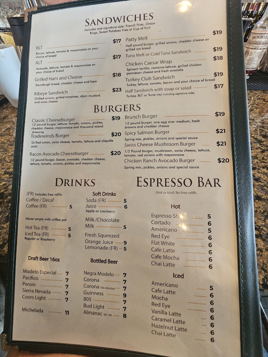 Service at Tradewinds is consistently praised for its attentiveness and warmth, creating a dining experience that feels personalized. Whether you're enjoying happy hour or a leisurely brunch, you can expect well-prepared food and good portion sizes at a fair price. Tradewinds Cafe and Bar is an ideal spot to relax, indulge, and savor delicious offerings with friends and family.