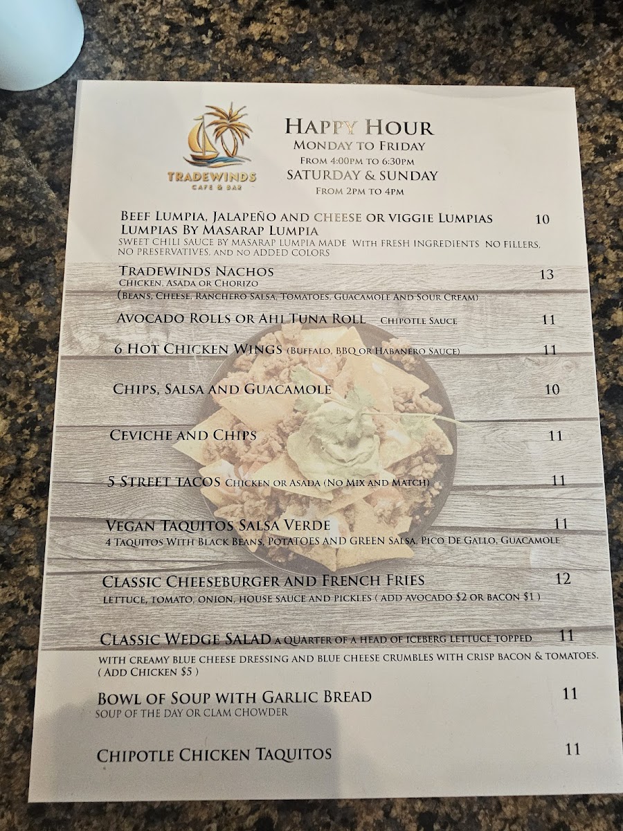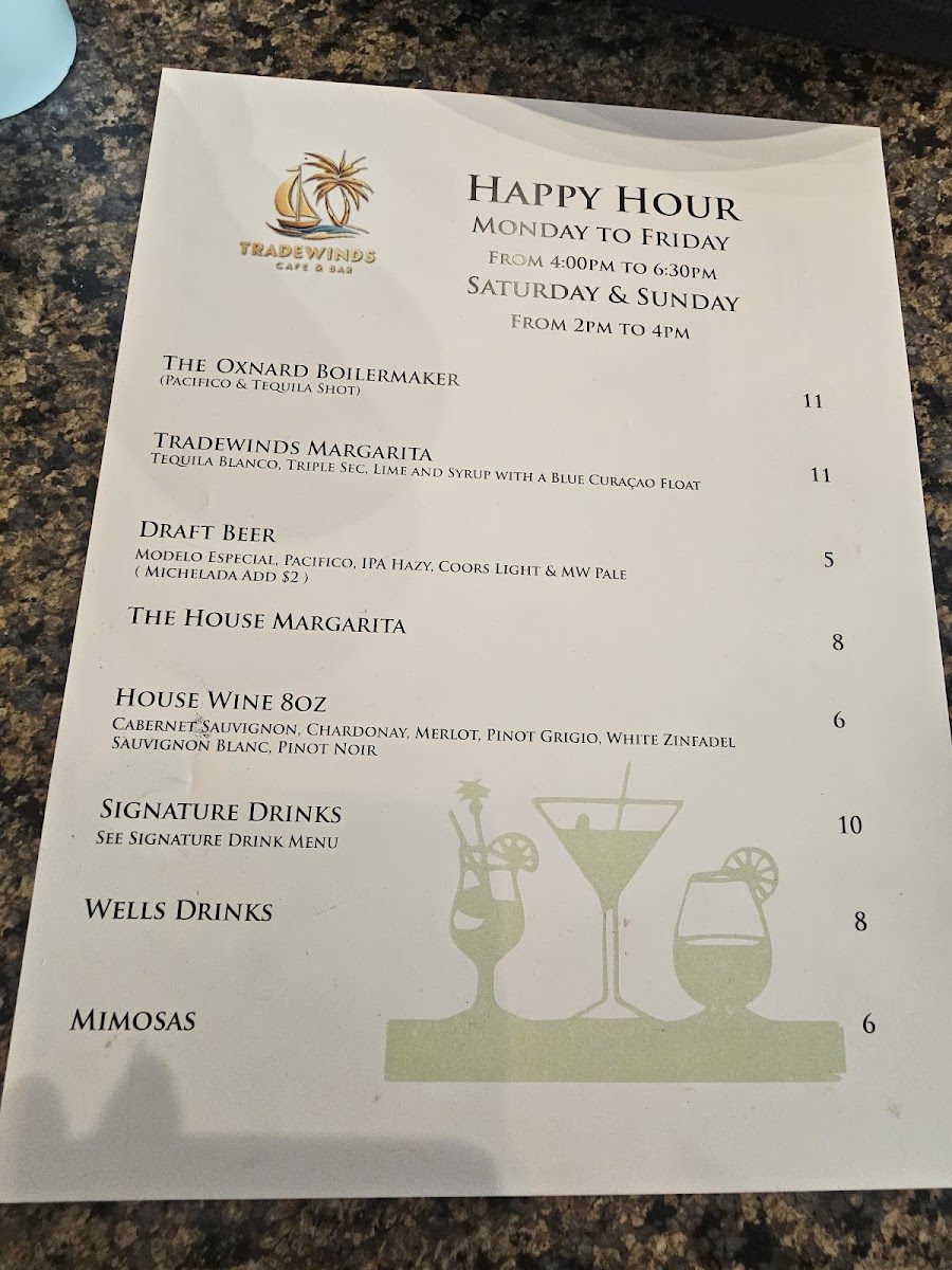 Welcome to Tradewinds Cafe and Bar, a delightful oasis located at 4308 Tradewinds Dr, Oxnard, CA. Proudly serving a diverse menu that features both American and traditional Mexican cuisine, this newly established gem has quickly become a local favorite.